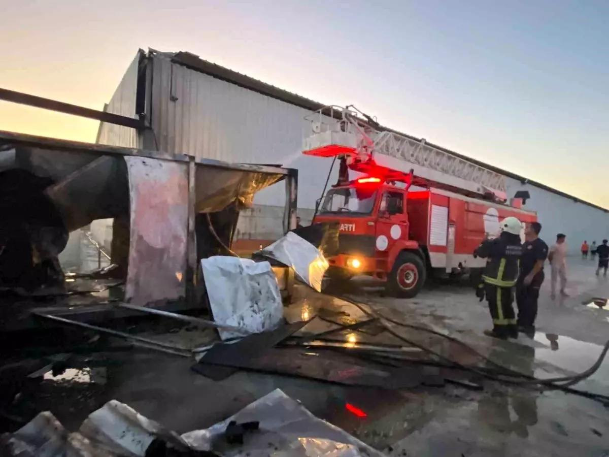 Antalya’nın Serik ilçesinde plastik kasa deposunda çalışan çalışanların kaldığı konteynerde yangın çıktı.