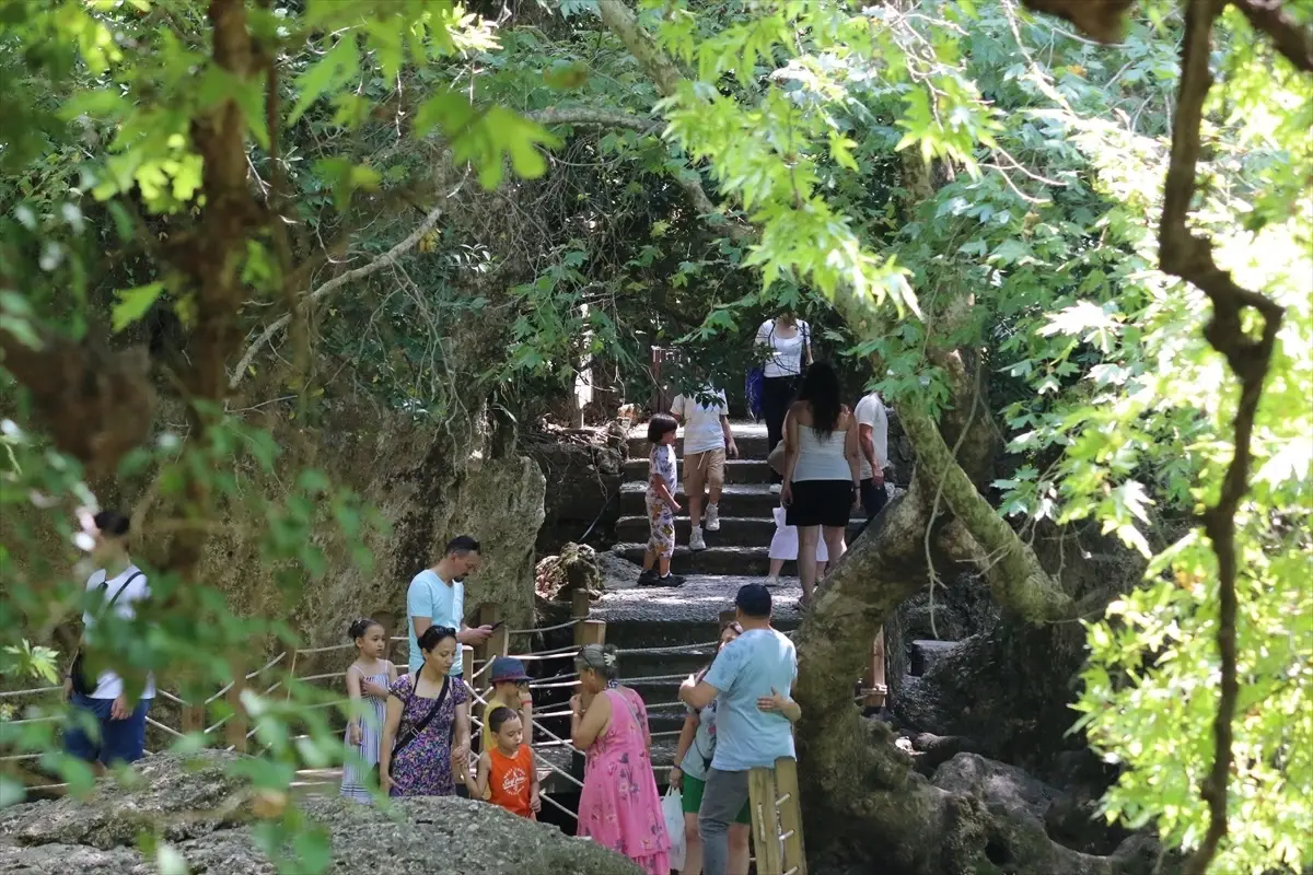 Boyları 20 metreyi geçen ağaçların ortasındaki patikalardan yürüyerek endemik bitkileri, 18 metre yükseklikten akan çağlayanı, minik şelaleleri görme imkanı bulan ziyaretçiler, yeşilin ve mavinin tonlarının buluştuğu tabiatta hoş vakit geçiriyor.
